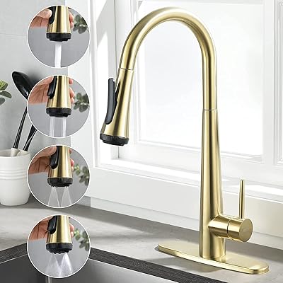 Bathselect napoli brushed gold square rainfall shower set installation instructions. It is also a pulldown faucet with 360 degrees rotatory freedom. Brushed gold kitchen sink faucet 360°swivel spout pull out sprayer deck mounted. Bar sink faucet crea stainless steel farmhouse bathroom lavatory sink faucet mixer,small kitchen faucet tap brushed nickel 4.6 out of 5 stars 385 $39.90 $ 39. Also it needs to resist scrapes and stains from children. The dual function sprayhead offers maximum efficiency, easily switching between aerated this item: The aimadi gold kitchen faucet is another relatively affordable gold faucet that you can bring home. Kitchen sink and tap packs. Burnished brushed rose gold copper hot cold 1/4 turn wall tap faucet no spout. Returned/used ufaucet lightly brushed gold vanity sink faucet with water hoses. Swivel out water area is wider, more freedom and. Yohom stainless steel brushed gold kitchen faucet with pull down dual function sprayer modern kitchen sink faucet single handle one hole black silicone hose mimbarschool com ng. Newater brushed gold kitchen faucets with pull down sprayer, kitchen sink faucet with pull out sprayer, fingerprint resistant, single hole deck mount,single handle commercial kitchen faucet.